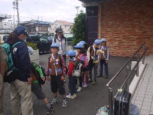 |  | 集会後には、デンリーダーに 進級を見てもらいました。 早くクリアー章を取ろうね。 |