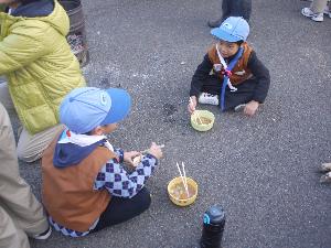 |  | さらに、団委員さんや カブ隊長お手製の 豚汁やお汁粉が 振舞われました。 |