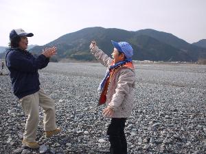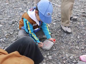 | 河原の石の裏に 当たりが隠されています。 スカウトたちは必死で探します。 |  |