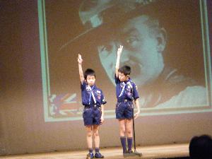 | セレモニーで カブ隊の”やくそく”を唱える 26団カブスカウト 立派です。 堂々としたものでした。 |  |