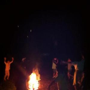 |  |  | 夜はキャンプファイアー なんといっても、 キャンプの楽しみです。 今年は掟破りの花火も少し・・ |