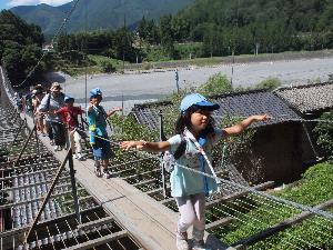 |  | ハイキングです。 キャンプ場の近くのダムと 釣り橋体験。凄く長い橋です。 ゴール近くは何とSLが。 隊長の時間管理、バッチリです。 足の下を走っていきました。 |  |
