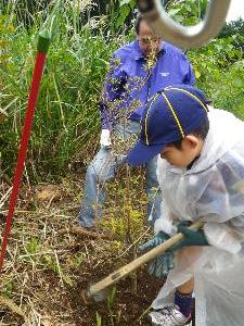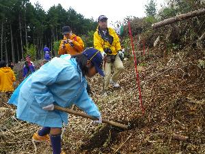| 急斜面に、 落葉樹の苗を植えました。 豊かな森になると良いですね。 |  |