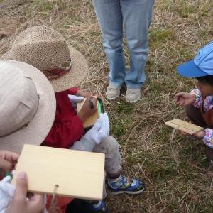 | 外で、いわゆる引っ付き虫という 植物を取ってきて 的に当てます。 |  |
