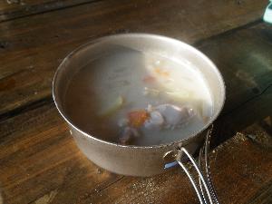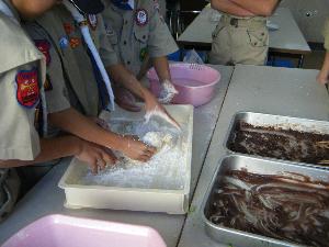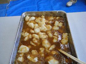 | スカウトの手で、小さくされて 班毎に考えた味付けになりました。 |  |