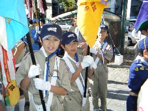 | 地区のスカウトが 市内をパレードします。 まずは、パレードの練習 リズムを感じるために手拍子 |  |