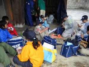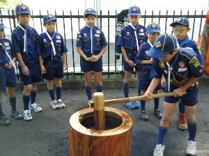 |  | つぎはボーイ隊 今回は隊長の希望で すべてをスカウトで行いました。 まずはお手本の見学。 |