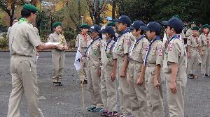 |  | 続いてビーバー隊 まずは隊長、お約束のボケ・・・・ スカウトたちはもちろん 真剣です。 |