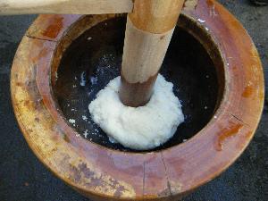 | つき上がった餅を 頂きます・・ おいしそうです。 |  |