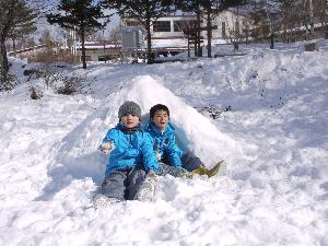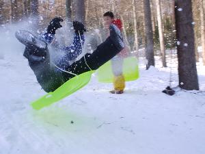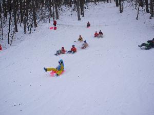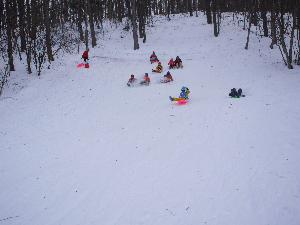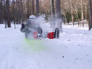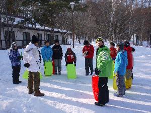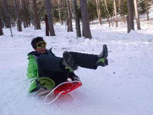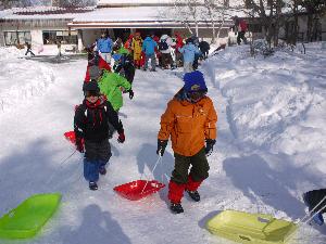 |  |  | 二日目の様子。 さすがボーイ隊は、そり遊びも迫力があります。 多分、数日間、お尻は痛いと思います・・・ |