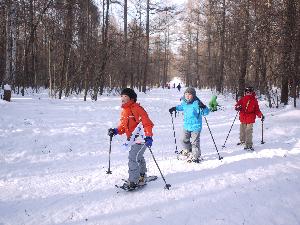 | いよいよ、プログラム開始 | スノーシューをはいて | スノーハイクに出発です。 |