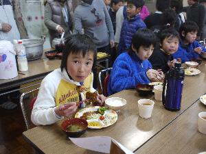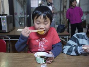 | 雪だるまを作る約束を、 お母さんとしてきたそうです。 ちゃんとできましたよ。 | 夕食風景 | 運動した後のご飯は美味しいです。 |
