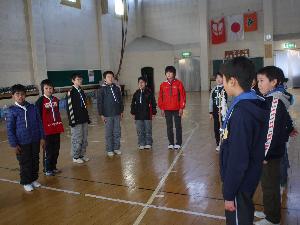 | 翌朝、いい天気です。(カブ隊朝礼) | でも寒いです(ボーイ隊朝礼) | 公共の場所も分担して掃除しました。 |