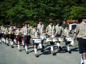 | しかし、この背中・・・ まあいいでしょう(笑) 演奏用ズボンが汚れた事を 心配するスカウトもいました。 米国リーダーは「大丈夫」と | |||