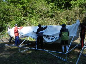 |  | 翌朝は隊長の指示を受け 撤収です。 スカウトだけでテントを格納します。 |  | |