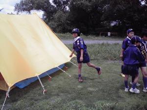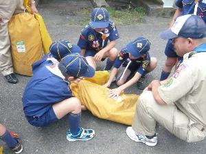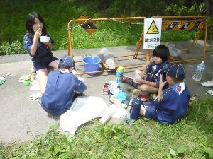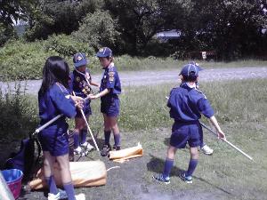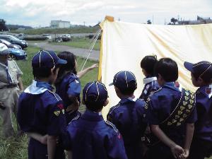 |  | カブ隊は、今日の集会も キャンプ訓練 飯盒炊爨もお手の物です。 |