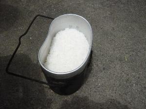 | みよ。このできばえ キャンプでは、ビーバーの分も 炊くことになっています。 これなら安心ですね。 組ごと、仲良く頂きました。 |  |