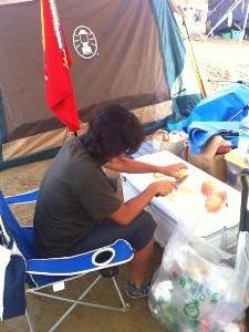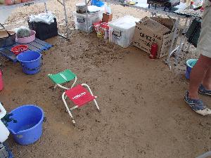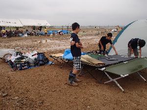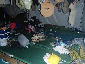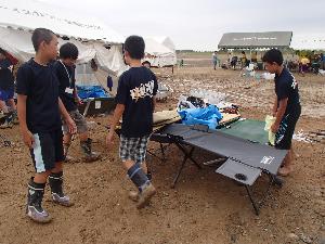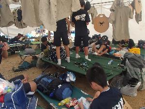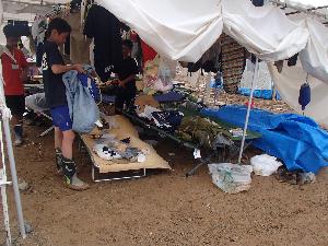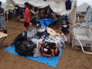 | サイトの様子です。 食事は、森本隊長を中心に 片付けはスカウト | テント内は、すごいことになってます。 難民キャンプ | |