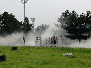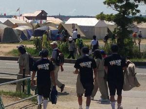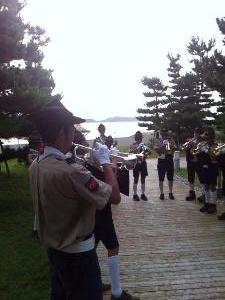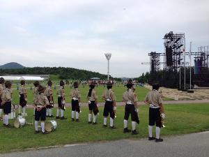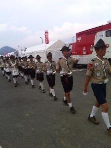 | 演奏関係の様子です。 | 参加国旗掲揚 国旗・緒旗掲揚 リハーサル ウエルカムセンター開会 ウエルカムセンターステージ ウエルカムセンターファンファーレ リハーサル 大集会か閉会式 国旗降納 | こんなスケジュールです。 朝06:30にサイトを出発し 戻るのは19:00 |