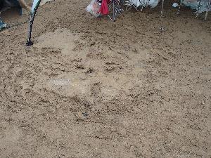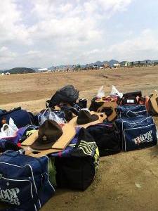 |  | ゲリラ豪雨の後 水溜りがひざくらいまでになりました。 何もかも、ぐちゃぐちゃです。 スカウトは乾いているものを探して 着てました。 |  |