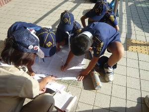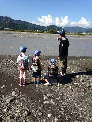 |  | ビーバー隊集会 先日の台風により、 にごった安倍川を 見ました。 川が生活を守ってることを 実感できたと思います。 |