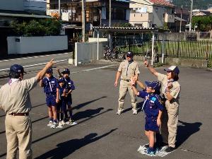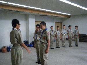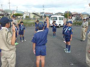 | 敬礼と仲良しの輪 カブスカウトの基本ですね。 こういうことからきっちりと |  |