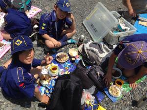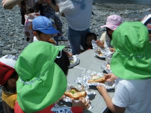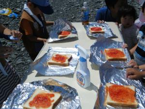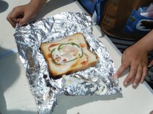 | 野外料理の練習をしました。 こちらはピザトースト |  |