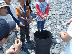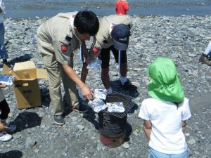 |  | 焼けるまで、石投げ。 最近はこんな事が出来る場所も 少なくなってしまったので、 良い経験になります。 |
