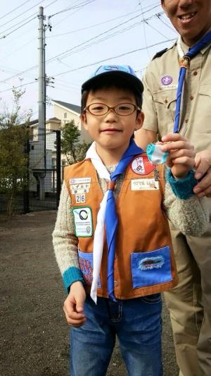| そして、この日の集会で 銀ダム章ゲット 小枝章10本で貰える26団独自の顕彰です おめでとうビーバー 表彰の時は照れてましたが、 本当にうれしそうでした。 誇らしげに記章を見せてくれました |  |