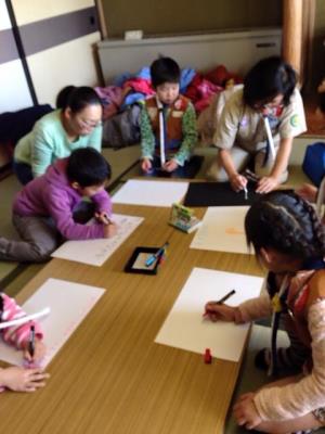 |  | ビーバー隊は、なにか正月らしい活動ということで すごろく作り ただ遊ぶより自分たちで作った方が 面白いですからね |