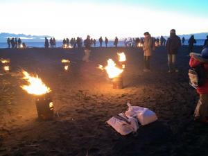 | ことしは寒かったです。 火を囲んで、御来光を待ちます |  |