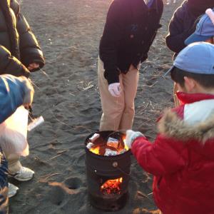|  | 御来光の後はお楽しみ もちを焼きます。 身体も温まってきます。 火加減というか、焼き上がりの タイミングがなかなか難しいんです。 |