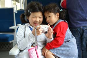 | GW初日。 早速、機関車の写真を見ています。 楽しいそうです。 |