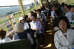 | スハフ17(トロッコ)の様子。 豊川まではスハフ12にいて、 駅到着からトロッコに移動できます。 |
