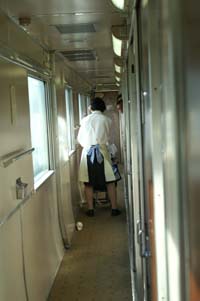 | 途中から車内販売が始まります。 1号車から順に販売です。 個室の人は、扉を開けて待っていて というアナウンスがあります。 |