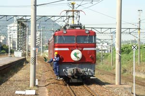 | 機関車も交代。 ED75。 はやぶさオンリーの ヘッドマークに変わります。 |