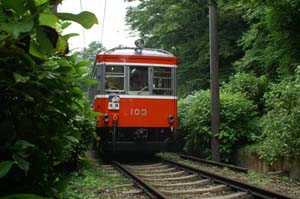 | スイッチバックの対向車両も 雨の中。 でも、情緒はたっぷり。 |