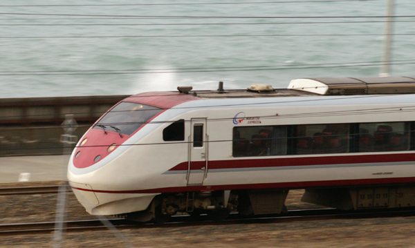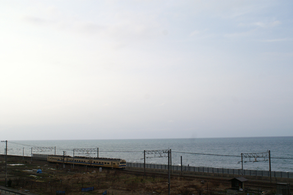 | 日本海沿いを驀進。 特急はくたか。 特急の風格充分です。 |
