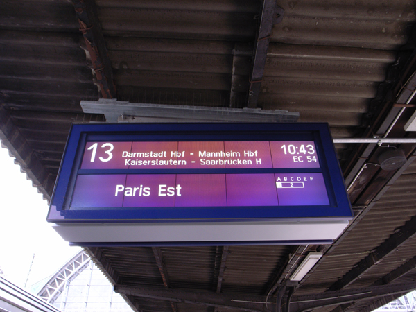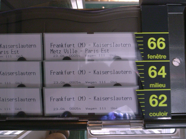 | ヨーロッパ特急EC54 フランクフルト発パリ東行きです。 数カ国をまたぐ国際特急。 さすがヨーロッパって感じです。 |