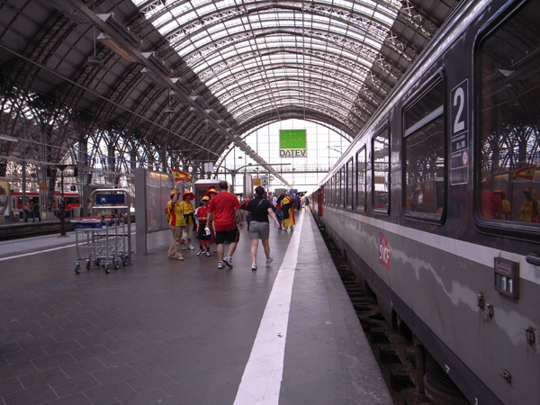 | フランクフルトの駅構内。 ターミナル駅で、 雰囲気いっぱいです。 |