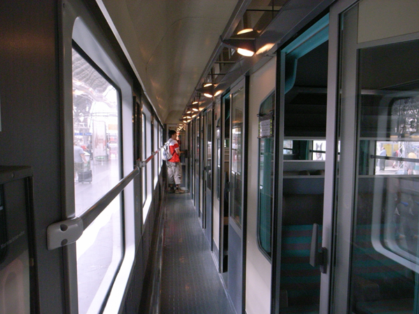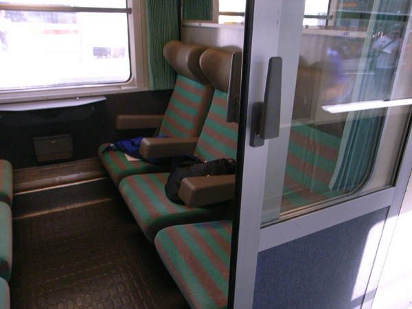 | 車内の様子。 乗ったのは、コンパートメントの 1等。 レイルパスなので安価です。 |