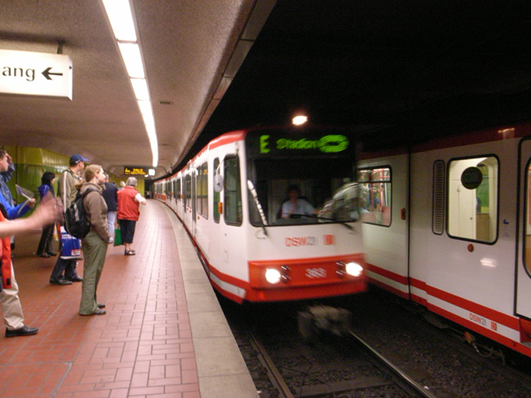 | ドルトムントの地下鉄。 小型の車両で、とラムが、 地下を走ってるといった感じ。 |