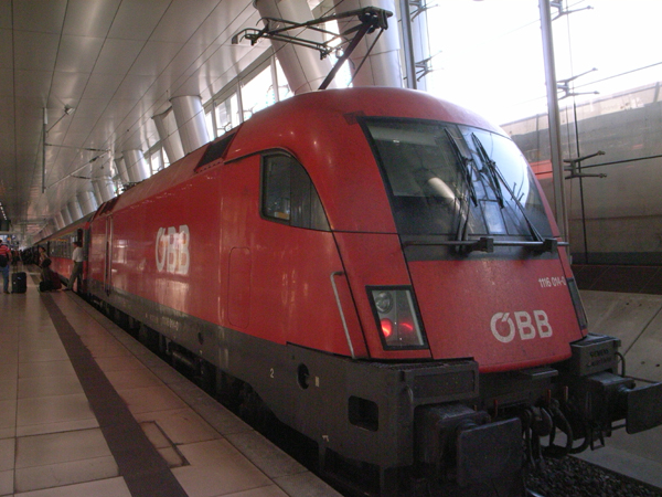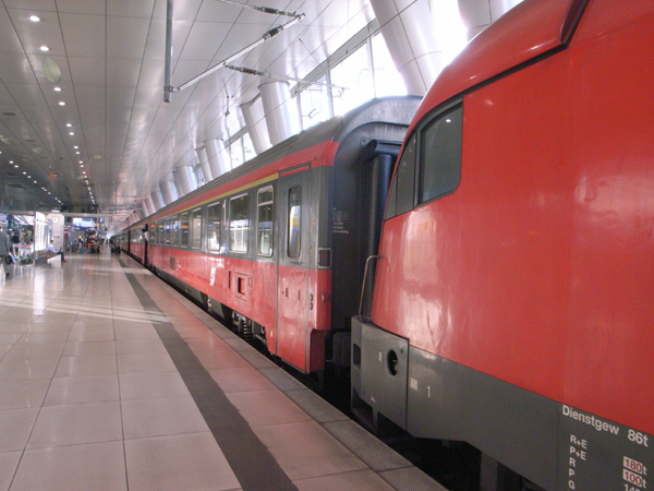 | フランクフルト空港駅にて。 オーストリアのEC。 |