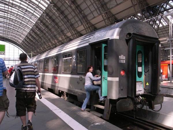 | フランクフルト駅のEC。 フランクフルト発パリ西行 機関車プル方式です。 |