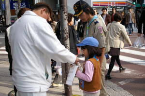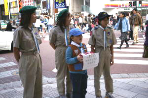 この日は、募金活動。 新潟中越地震と台風被害への義援が目的です。 |