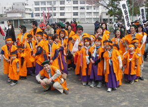 | 集会で練習した成果が出ています。 春の一日、ふるさとのお祭りに参加して もっともっと、静岡が好きになりました。 |