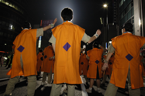 | おや、今日はいつもと違う格好です。 しかも、集団となって、街中を歩いていますね。 |