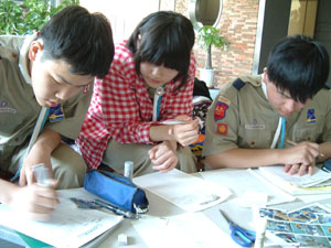 | ベンチャー隊、プロジェクト企画風景。 今回は、合同プロジェクト。 各自のニーズを出し合い、テーマを決めました。 富士スカウトへの道は、楽しいね。 |