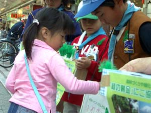 | 緑の羽根共同募金に協力いたしました。 ビーバーからベンチャーまで、 臨時の班を作り、募金を呼びかけました。 |