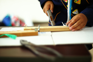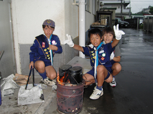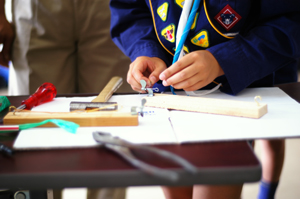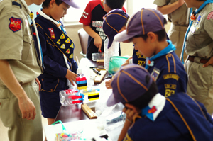 | カブスカウトが何やら工作。 手元が真剣です。 |